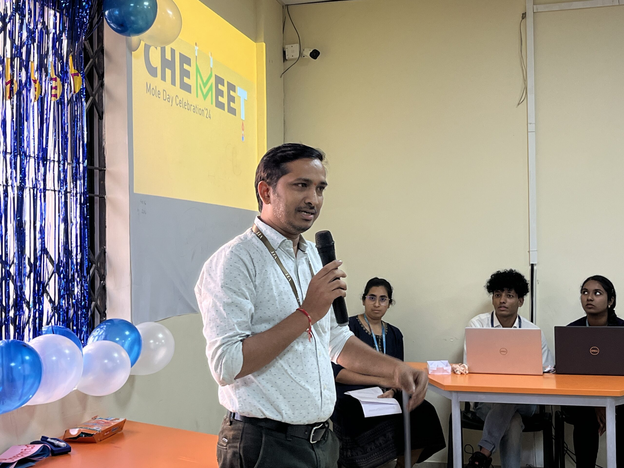 Mole Day celebration on October 22, 2024, aimed at honoring the contributions of chemistry to science and daily life. The event brought together students, PhD scholars, and faculty members to celebrate the importance of Avogadro’s Number and the concept of the mole, which are foundational in chemistry. Mole Day provided an engaging platform for students and scholars to connect, learn, and enjoy interactive chemistry-themed activities.